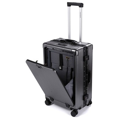 Pc อลูมิเนียมกรอบกระเป๋าเดินทางกับที่วางแก้วผู้ถือแบตเตอรี่ usb ชาร์จพอร์ตกระเป๋าเดินทางกระเป๋าเดินทาง20 24นิ้ว