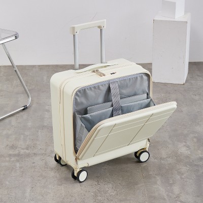 กระเป๋าเดินทางดีไซน์เปิดด้านหน้าออกแบบเองได้พร้อม ° 360ล้อสีอ่อน