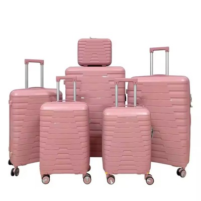 กระเป๋าเดินทางขายดีวัสดุ PP พร้อม ° 360ล้อสีอ่อนกระเป๋าเดินทางแบบแข็งกระเป๋าเดินทางน้ำหนักเบา