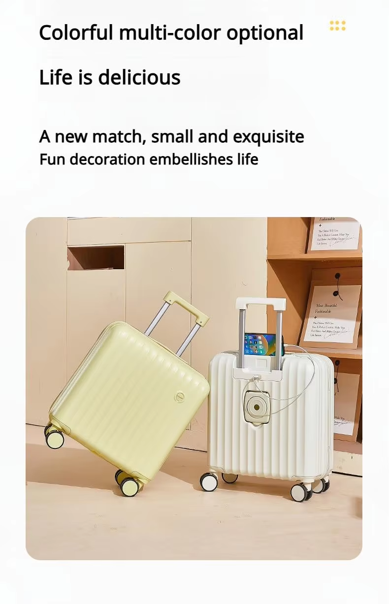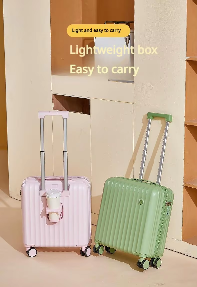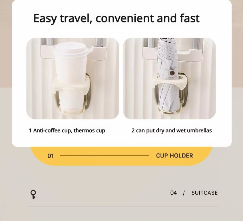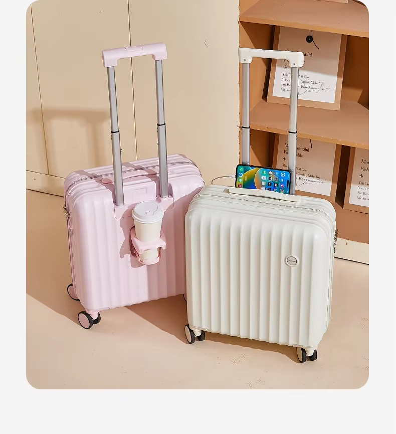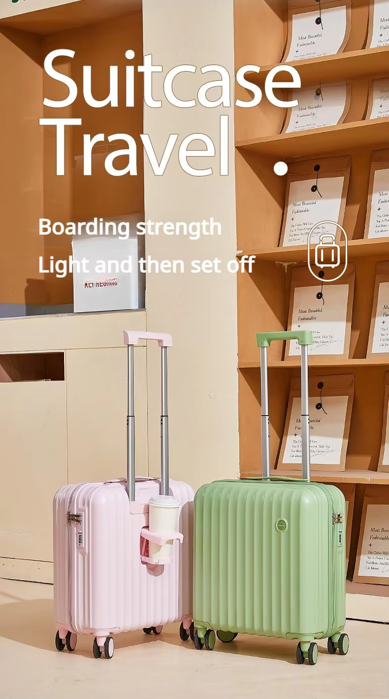 ขายส่ง2024การออกแบบใหม่กระเป๋าเดินทางกลางแจ้งเปลือกแข็ง ABS กระเป๋าดำเนินการในกระเป๋าเดินทางที่มีที่วางแก้ว