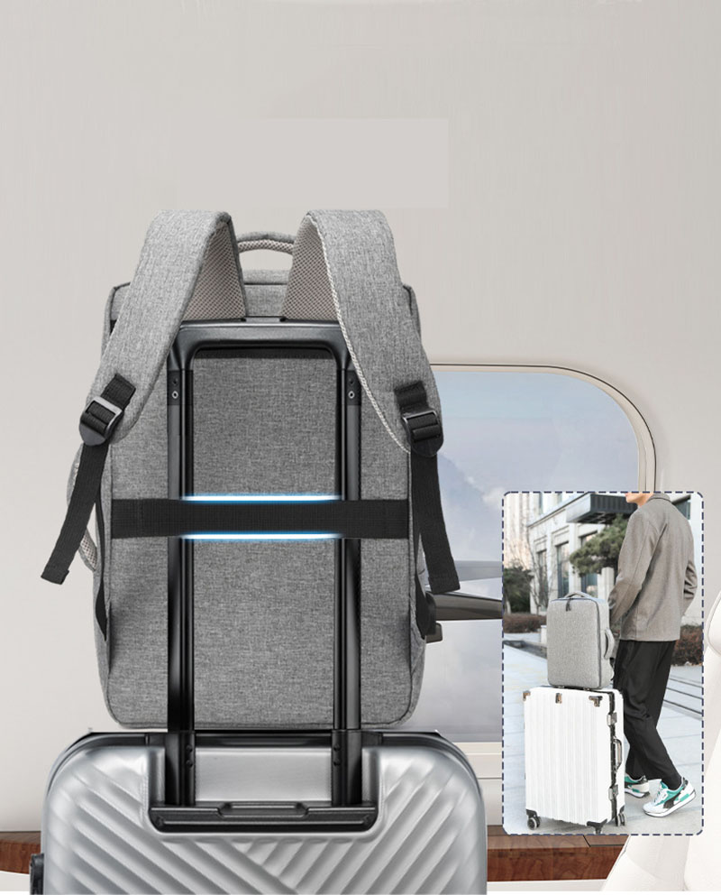 สายรัดยางยืดที่ด้านหลังของกระเป๋าสามารถยึดกับก้านกระเป๋าเดินทางได้